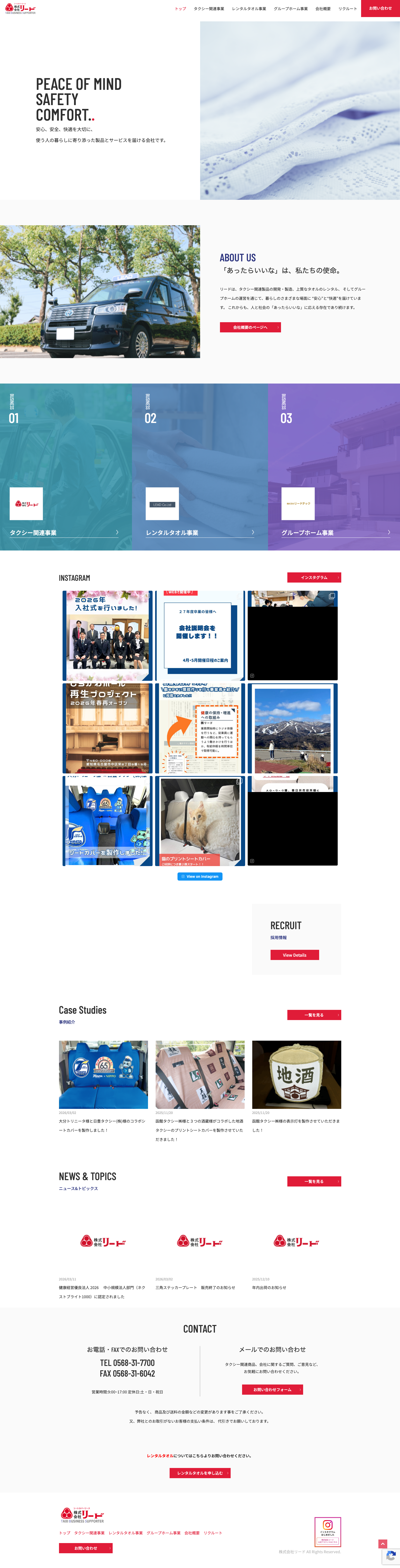 また、事業ごとの特色を保ちながらも、全体を通して企業としての統一感を出すために、デザインのテンポや情報の見せ方、各ページの役割整理を丁寧に行いました。写真のクオリティーで他社との差別化も図っています。なかなか手のつけにくい自社事業の写真撮影ですが、リード様のご協力によりいい撮影ができました。